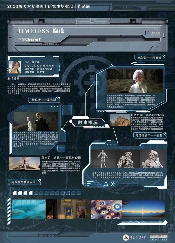 研究生毕业作品展以“像素洄游”为主题,深入探索艺术与科技交融的无限可能。展览突破传统媒介界限,融合动态影像、装置艺术、游戏交互等前沿形式,分为“概念设计”“人物造型设计”“综合绘画”“跨媒介创作”四大版块。在传统美学与现代技术碰撞中,凸显学术研究深度与前瞻性,展现研究生对艺术未来的深刻思考。
