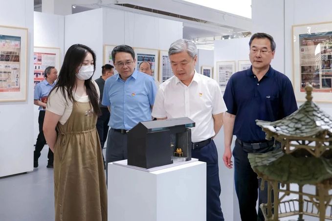 6月6日,党委书记廖祥忠,党委副书记、校长张树庭,党委副书记、纪委书记蔺海波,党委常委、副校长刘守训、李新军、王晖、杨懿、柴剑平,党委常委、组织部部长徐红梅,校长助理金炜前往艺术展览中心,参观指导戏剧影视学院美术系2025届毕业作品展。