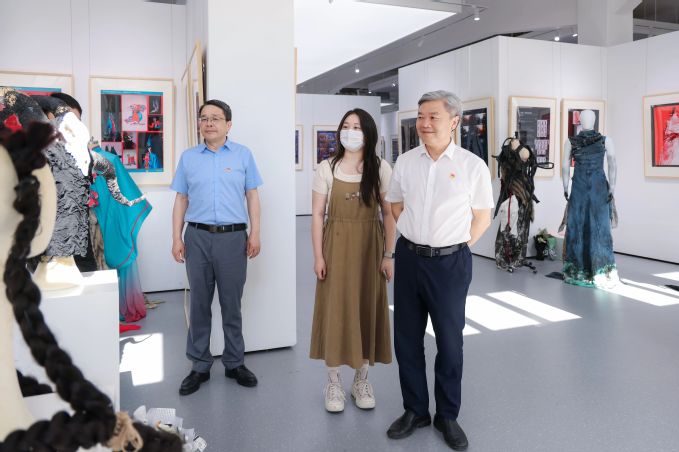 在观展过程中,廖祥忠对毕业生们的作品给予高度评价,对毕业作品展呈现出的学科专业特色表示充分肯定。围绕毕业设计展工作,廖祥忠提出,要充分利用毕业作品展的机会,加大与行业的深度交互与交流,提升艺术类人才培养水平和学科专业建设水平。要用好艺术展览中心,推进艺术类专业常态化作品展、成果展,不断优化艺术类教育过程评价。持续激发学生的创作潜能,不断提升学生的艺术水准,以展促学、互鉴互学,提升艺术类专业人才培养水平。