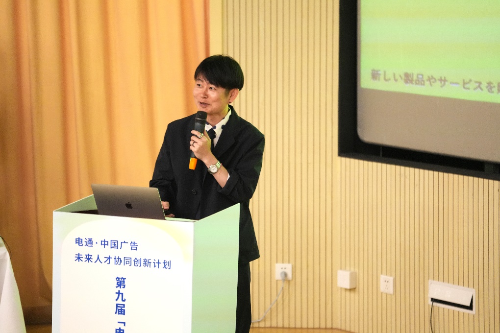 高嶺裕代表株式会社电通对时隔五年恢复线下举办的第九届“电通·创新人才训练营”的顺利开幕表示由衷祝贺。她表示,电通·中国广告未来人才协同创新计划作为电通核心的国际CSR项目,在中国教育部及全国各高校的支持下,已持续开展29年,凝聚了中日双方的智慧与热情。面对生成式AI、量子技术等带来的剧变,该项目也将与时俱进、跨界合作,成为青年接触前沿案例、畅想未来、为社会贡献创意解决方案的起点,使其成为照亮日中未来的光芒。