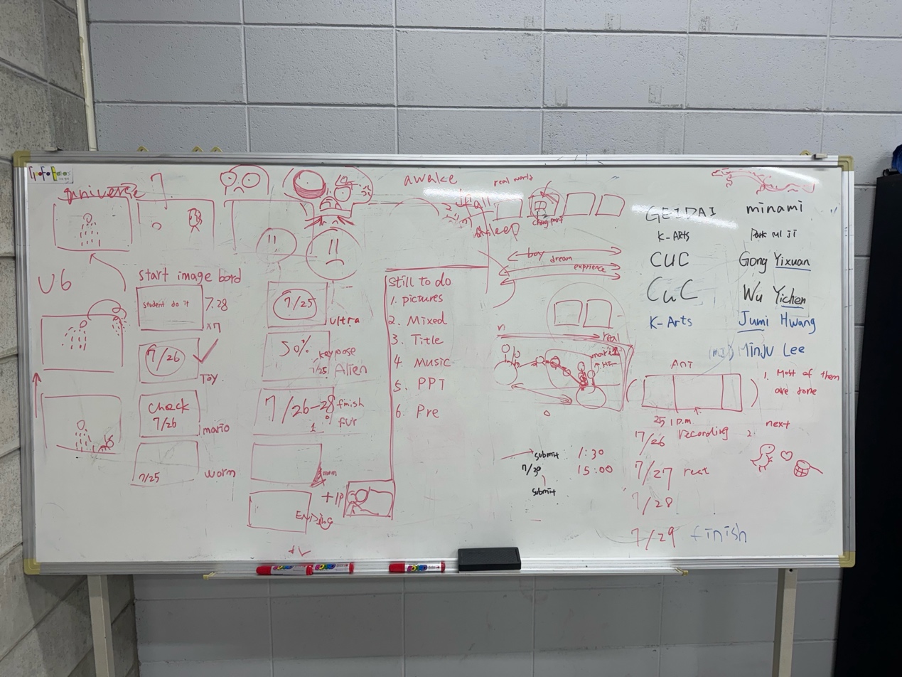 活动分为四个阶段:前期线上交流、团队组建与概念设计、集中线下团队创作,以及最终作品展映。参与本次项目的中日韩三所高校学生,通过线上自我技能展示与创意分享,以及跨国组合原则,分为5组进行合作。在线下创作阶段,同学们积极克服语言障碍与文化差异,在15天内密切合作,共同创作完成了5部各具特色、时长为1~2分钟的动画短片。本次活动中方学生以动画与数字艺术学院研究生、本科生为主体,同时特邀海南国际学院数字媒体技术专业本科生加入,以项目助手的身份全程参与每组创作。