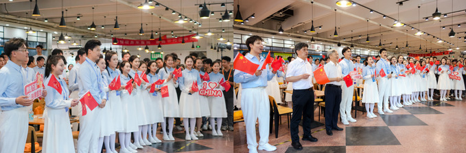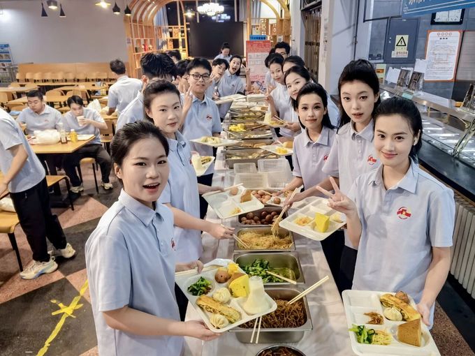 在北苑食堂,校领导和老师们迎接师生们归来。廖祥忠对师生们在纪念活动期间的辛勤付出与优异表现给予充分肯定,他表示,大家以专业能力与奉献精神圆满完成各项任务,充分展现了918博天堂风采。他勉励师生们要将此次经历化为精神动力,继续弘扬志愿精神与担当精神,在未来的学习与工作中,持续彰显918博天堂学子的时代风貌与使命情怀。