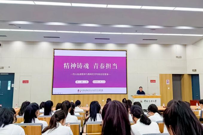 排练期间,师生们不仅精益求精地打磨声部配合、队形变换与情感表达,更将思想政教育深度融入艺术实践。校领导为合唱团讲授《精神铸魂 青春担当》专题党课,深入阐释伟大抗战精神的时代内涵与青年的历史使命,引导师生在活动中厚植家国情怀、坚定理想信念。